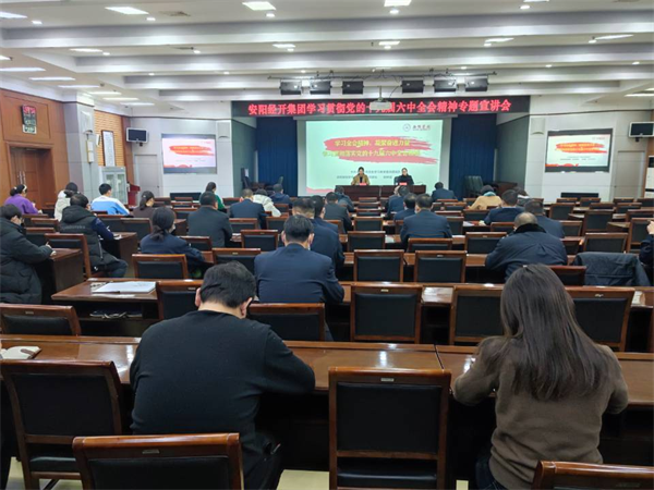 12月14日上午,安陽經(jīng)開集團(tuán)召開學(xué)習(xí)貫徹黨的十九屆六中全會精神專題宣講會,深入學(xué)習(xí)貫徹習(xí)近平總書記在黨的十九屆六中全會上的重要講話精神和《中共中央關(guān)于黨的百年奮斗重大成就和歷史經(jīng)驗的決議》,特邀請中共安陽市委黨史學(xué)習(xí)教育宣講團(tuán)成員、安陽學(xué)院黨委委員、宣傳部部長姚林茹進(jìn)行授課,會議由經(jīng)開集團(tuán)黨委委員、副總經(jīng)理劉志霞主持。洹河保安公司黨委副書記張錫軍帶隊,組織公司15名黨員干部參加學(xué)習(xí)。