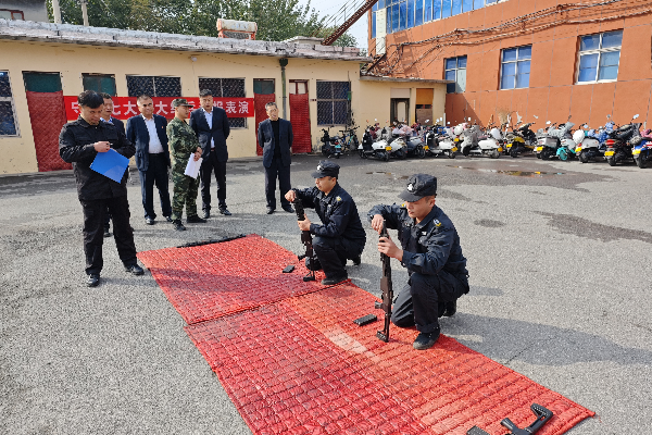 為切實提升保安隊伍整體素質(zhì)與形象,提高服務(wù)質(zhì)量和履職能力,按照公司年度工作安排,以公司副總經(jīng)理李樞林為組長的大練兵考核組,分別對人防、守押、特保三個單位2024年度大練兵成果進行全面考核??己似陂g,公司領(lǐng)導(dǎo)魏東、孫國濤、李樞林現(xiàn)場監(jiān)督指導(dǎo)。