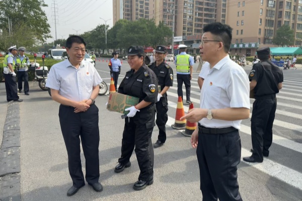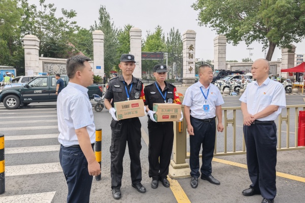 為切實做好高考期間安全保障工作,確??忌鷵碛邪踩?、有序的考試環(huán)境,6月7日上午,公司領(lǐng)導班子深入市區(qū)各高考考點,實地檢查督導高考安保工作,并親切慰問堅守一線的執(zhí)勤保安員,為他們送去防暑降溫物資和公司的關(guān)懷問候。