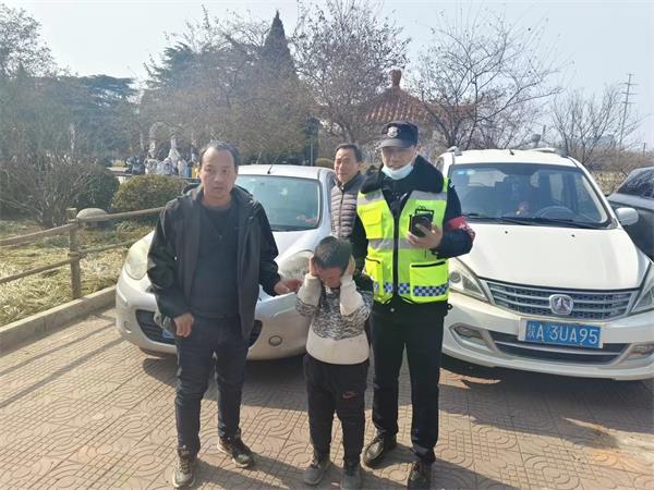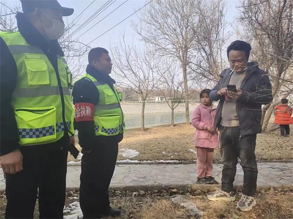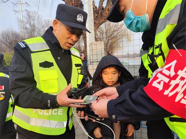 廟會執(zhí)勤期間,下午3時許,五中隊駐煙廠保安班長孫海杰和王偉發(fā)現(xiàn)一小男孩走丟找不到父母,立即詢問孩子父母電話,和其父母取得聯(lián)系以后,安全把孩子交到父親手里。
