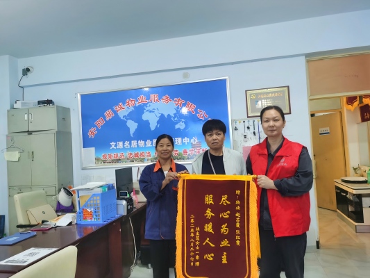 接到求助后,保潔人員詳細(xì)記錄了衣物的特征、晾曬時間及發(fā)現(xiàn)丟失的時間,并第一時間在可能掉落的區(qū)域展開細(xì)致查找。經(jīng)過多方努力,最終在10號樓南側(cè)的綠化帶中找到了業(yè)主丟失的衣物,并及時歸還。業(yè)主對物業(yè)高效、負(fù)責(zé)的工作態(tài)度表示高度認(rèn)可,特意制作了一面寫有“盡心為業(yè)主 服務(wù)暖人心”的錦旗贈予物業(yè)服務(wù)中心,以表達(dá)誠摯感謝。
