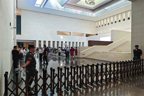 主題展示環(huán)節(jié)中,《周易》與四大全球倡議展示、服裝中的文明圖景展示等吸引大量觀眾,隊員采取“定點(diǎn)守護(hù)+動態(tài)巡邏”模式,在各展示區(qū)域合理布控,引導(dǎo)觀眾有序參觀;AI展示環(huán)節(jié)人員集中、互動性強(qiáng),隊員加大巡查頻次,及時提醒觀眾注意安全,有效防范意外。