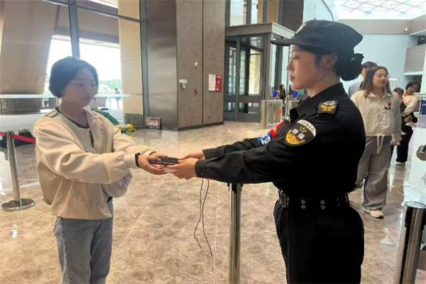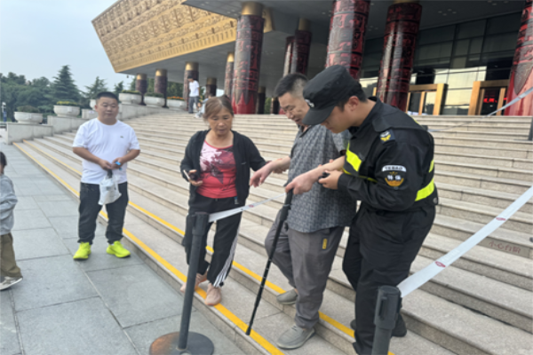 節(jié)日期間,特保大隊(duì)實(shí)行24小時(shí)輪班值守,全體隊(duì)員全情投入安保工作。一是嚴(yán)把入口關(guān)。安檢隊(duì)員嚴(yán)守各場館入口安檢關(guān)口,細(xì)致排查易燃易爆、管制刀具等違禁物品。僅殷墟博物館、中國文字博物館、漢字公園3處,日均完成超4萬余人次安檢,精準(zhǔn)攔截多起違禁品,筑牢“危險(xiǎn)物品不入園”的堅(jiān)實(shí)防線。二是強(qiáng)化內(nèi)部巡邏。館內(nèi)隊(duì)員加密巡邏頻次,既重點(diǎn)盯防文物展柜等安全要害,又聚焦客流易聚集區(qū)域。實(shí)時(shí)疏導(dǎo)擁擠人群,有效防范各類安全風(fēng)險(xiǎn)。三是維護(hù)現(xiàn)場秩序。游客熱點(diǎn)區(qū)域,隊(duì)員遇人員飽和時(shí),及時(shí)引導(dǎo)游客分批次有序游覽,保障良好秩序。四是提供暖心幫助。特保隊(duì)員專注引導(dǎo)行人安全通行。遇到老年游客或攜帶重物的游客,主動(dòng)上前攙扶、協(xié)助搬運(yùn)行李,以貼心舉措傳遞安保溫度。