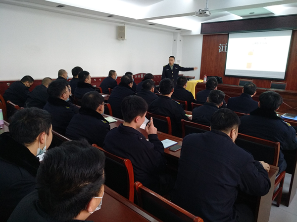 2021年1月5日下午,守押六大隊組織隊員聆聽消防安全知識講座,安陽市社安消防科技有限公司教官馬曉主持講座。