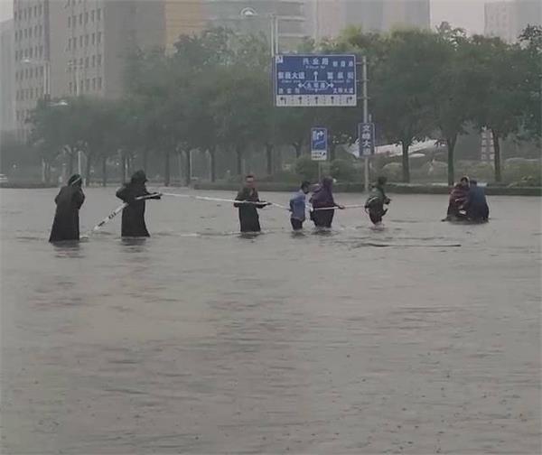 7月22日早6時許,汛情肆虐,雨越下越大,寬闊的安陽市東區(qū)文峰大道水深過膝,儼然變成了一條奔涌的河流。安陽市事務(wù)管理局在周福林副局長的指揮下,緊急啟動防汛救災(zāi)應(yīng)急處置預(yù)案,各防汛突擊小組分工明確,責(zé)任到人,全力投入抗洪戰(zhàn)斗。在南大門值守的駐市黨政大樓保安員在中隊長戶永豐帶領(lǐng)下搬運沙袋剛構(gòu)筑好攔水壩,還沒來得及歇口氣,忽然聽到一女子“救命”的呼救聲。隊員們循聲望去,只見路上洶涌的激流中沖過來一個人,那人想站又站不起來,在水中翻滾著由西向東順流而下。