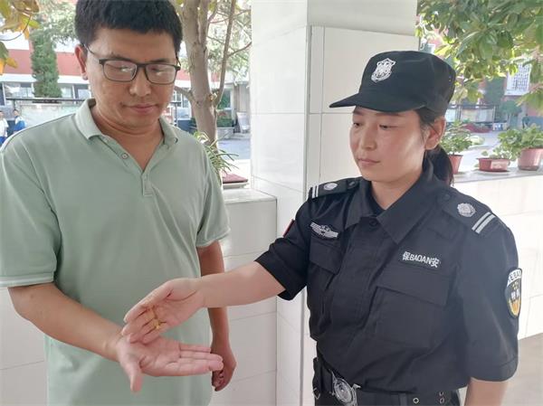 國慶節(jié)放假前夕,安陽市幸福路中學(xué)門口上演了一幕溫暖人心的場景。人防三大隊派駐該校保安高美麗如往常一樣堅守在下午入學(xué)的“護學(xué)崗”,一邊引導(dǎo)送學(xué)車輛有序通行,一邊提醒學(xué)生安全入校。在疏導(dǎo)完高峰人流后,例行巡查校門口區(qū)域時,于人行橫道旁發(fā)現(xiàn)一條精致的金項鏈,鏈身鑲嵌的吊墜完好無損,初步判斷價值不菲。