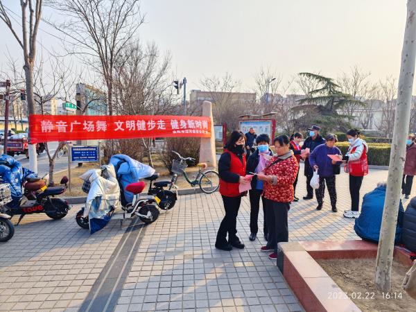 為倡導(dǎo)文明健康的生活方式,引導(dǎo)群眾培養(yǎng)文明行為習(xí)慣,促進(jìn)全民健身運(yùn)動(dòng)文明、健康、有序發(fā)展,營造良好公共環(huán)境,2月22日下午,公司志愿者們來到平原橋法治文化廣場(chǎng)開展“靜音廣場(chǎng)舞 文明健步走 健身新時(shí)尚”宣傳志愿服務(wù)活動(dòng)。
