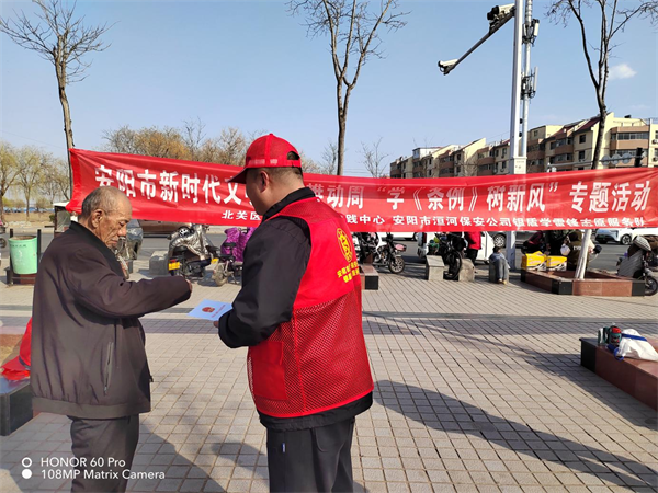 為大力培育和弘揚(yáng)社會(huì)主義核心價(jià)值觀,引導(dǎo)廣大群眾樹立文明觀念,3月3日下午,公司組織志愿者來到平原橋法治廣場開展安陽市新時(shí)代文明實(shí)踐推動(dòng)周“學(xué)條例 樹新風(fēng)”《安陽市文明行為促進(jìn)條例》集中宣傳活動(dòng)。