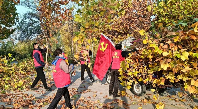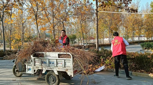 上午8點(diǎn)15分,黨員干部身著志愿者紅馬甲,手擎黨旗來到訓(xùn)練場,大家開始分頭行動(dòng),有的騎三輪運(yùn)送樹枝,有的往車上擺放,大家干的熱火朝天,石榴樹滿樹枝都是刺,楊樹下來的枝干非常碩大,大家或小心翼翼或用盡全力,進(jìn)過兩個(gè)半小時(shí)的努力,將小車訓(xùn)練場上樹枝清理完畢。下午2點(diǎn)15分,大家又重新集合,開始訓(xùn)練場樹葉清理工作。直到下午5點(diǎn),大家終于將訓(xùn)練場整修一新。