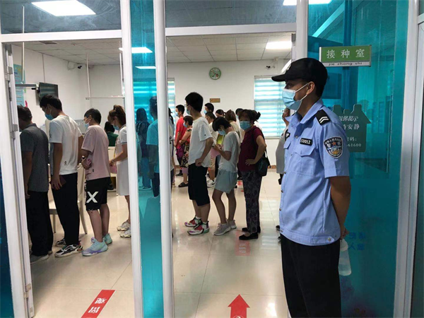 特保巡防隊員緊密配合相關部門,現(xiàn)場維護秩序。接種現(xiàn)場分別設置等候區(qū)、登記室、接種室、留觀區(qū)、隔離室和處置室等區(qū)域。為防止疫苗接種現(xiàn)場人員集中涌入,造成人員聚集,執(zhí)勤隊員全程做好現(xiàn)場秩序維持、人員分流、指導疫苗接種群眾佩戴好口罩、有序排隊、填寫疫苗接種登記信息、入場,并及時勸導接種后人員有序撤離現(xiàn)場,接種現(xiàn)場整個過程有條不紊。