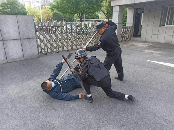 為做好這次防恐預(yù)案演練,人防一大隊領(lǐng)導(dǎo)和郵局保安班隊員一起,對預(yù)案方案進(jìn)行了細(xì)化,從場景設(shè)置到人員安排,從道具準(zhǔn)備到過程節(jié)點把握都做了詳細(xì)安排和部署。4月13號上午8點,郵局保安班一場外來人員到郵局機關(guān)大院鬧事防恐演練開始,保安員正在值班中間,從外面進(jìn)來兩名陌生人員想進(jìn)入大院,其中一名保安隊員上前詢問兩名陌生人員辦什么事,兩名陌生人員突然從身上掏出兇器,就要強行闖卡。保安見情況不妙,馬上用對講機呼喊隊員帶防爆器材過來,這期間,這兩名陌生人員拿著兇器在門口鬧事,保安隊員又及時打電話通知保衛(wèi)科,讓各科室把門鎖好以防進(jìn)入樓層。兩名保安帶著防爆叉以及盾牌阻止陌生人員違法行為,經(jīng)過一番搏斗,終于制服了兩名陌生人員,然后向公安機構(gòu)報警。