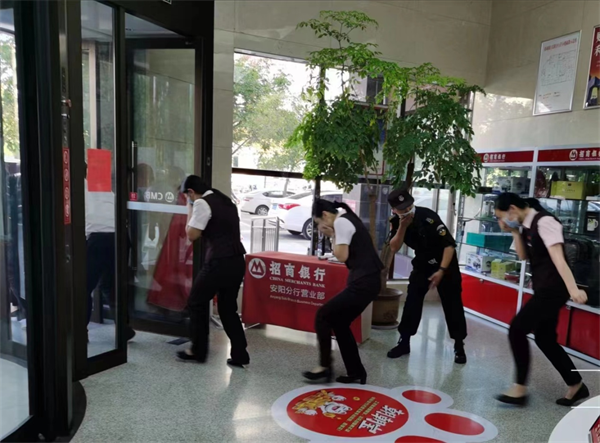 為進一步強化“國慶”、“二十大”期間金融部門銀行業(yè)對外營業(yè)安全及應對突發(fā)事件能力,10月3日下午,招商銀行聯(lián)合特保大隊駐招商銀行特保班進行了消防應急預案演練,特保班長王瑜負責組織指揮,特保隊員分工明確行動迅速、妥善處理險情,受到銀行保衛(wèi)部經(jīng)理王瀟曉的好評。