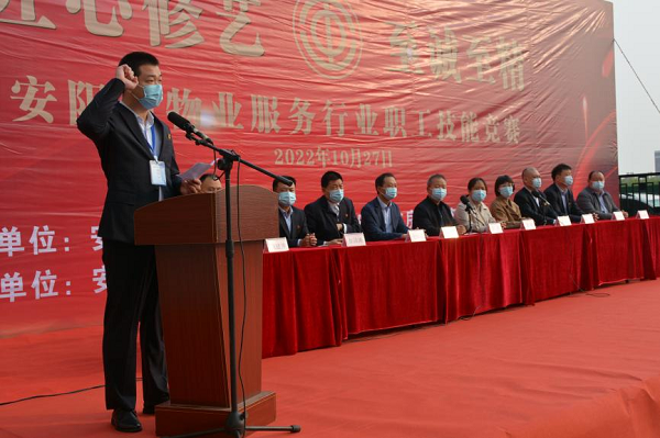 安陽市總工會(huì)四級(jí)調(diào)研員苗廣軍同志指出,本次職業(yè)技能大賽不僅是學(xué)習(xí)貫徹黨的二十大精神,弘揚(yáng)勞動(dòng)精神、勞模精神、工匠精神的重要舉措,也是提升職工技能水平的重要手段,同時(shí),強(qiáng)調(diào)本次技能大賽既可以塑造廣大職工在“干中學(xué)”、“學(xué)中練” “練中賽”的骨干品格,彰顯勞動(dòng)內(nèi)容,也是物業(yè)行業(yè)水平的大比武,職工素質(zhì)的大提升,希望參賽選手在比賽中展出風(fēng)格,賽出水平,在平凡崗位上進(jìn)行不平凡的事業(yè)。