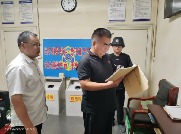 在槍彈庫,韋洪東仔細(xì)查看了槍支領(lǐng)用審批表和槍支彈藥日常使用登記臺賬等各項(xiàng)工作臺賬,并對日常槍支使用安全問題進(jìn)行詳細(xì)詢問,特別強(qiáng)調(diào)要嚴(yán)格遵守公司制度,保證每天押運(yùn)途中的運(yùn)輸安全,確保大隊(duì)押運(yùn)工作安全進(jìn)行。