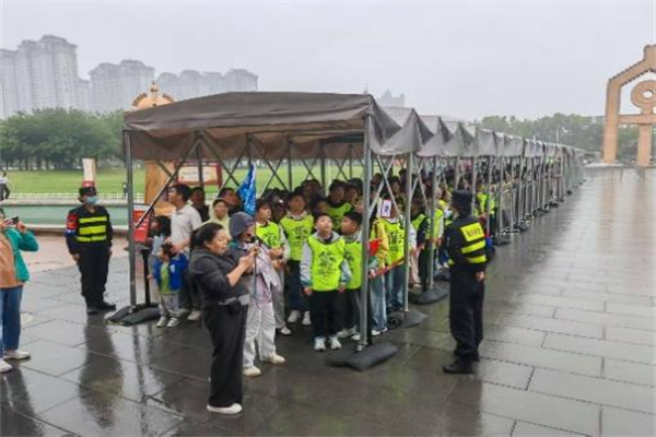 節(jié)日期間,特保大隊(duì)實(shí)行24小時(shí)輪班值守,全體隊(duì)員全情投入安保工作。一是嚴(yán)把入口關(guān)。安檢隊(duì)員嚴(yán)守各場館入口安檢關(guān)口,細(xì)致排查易燃易爆、管制刀具等違禁物品。僅殷墟博物館、中國文字博物館、漢字公園3處,日均完成超4萬余人次安檢,精準(zhǔn)攔截多起違禁品,筑牢“危險(xiǎn)物品不入園”的堅(jiān)實(shí)防線。二是強(qiáng)化內(nèi)部巡邏。館內(nèi)隊(duì)員加密巡邏頻次,既重點(diǎn)盯防文物展柜等安全要害,又聚焦客流易聚集區(qū)域。實(shí)時(shí)疏導(dǎo)擁擠人群,有效防范各類安全風(fēng)險(xiǎn)。三是維護(hù)現(xiàn)場秩序。游客熱點(diǎn)區(qū)域,隊(duì)員遇人員飽和時(shí),及時(shí)引導(dǎo)游客分批次有序游覽,保障良好秩序。四是提供暖心幫助。特保隊(duì)員專注引導(dǎo)行人安全通行。遇到老年游客或攜帶重物的游客,主動(dòng)上前攙扶、協(xié)助搬運(yùn)行李,以貼心舉措傳遞安保溫度。 好人好事不斷,傳遞服務(wù)溫情。