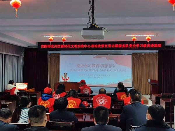為引導(dǎo)全區(qū)黨員干部從百年黨史中感悟思想偉力,汲取奮進(jìn)力量,11月29日上午,公司參加由北關(guān)區(qū)文明辦在安陽(yáng)市地震局五樓召開《安陽(yáng)市北關(guān)區(qū)新時(shí)代文明實(shí)踐中心理論政策宣講志愿服務(wù)隊(duì)黨史學(xué)習(xí)教育進(jìn)基層活動(dòng)》,北關(guān)區(qū)文明辦副主任齊書蘭進(jìn)行宣講。